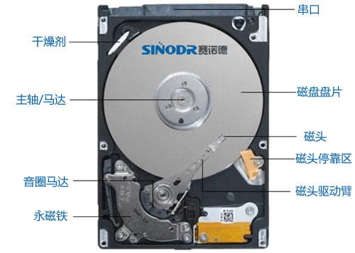 接下来,SINODR赛诺德数据恢复工程师从下图的硬盘内部结构来进行分析哪些因素会导致硬盘发生故障,让电脑认不出来。